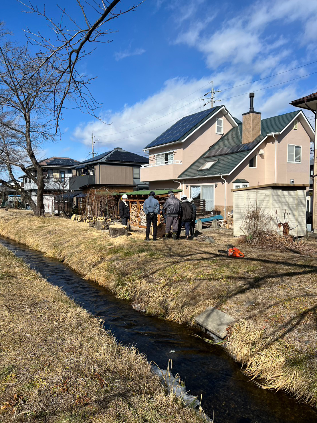 節分を迎える厳しい寒さの中で、若連・協議会による宮川桜並木の間伐作業を行いました。
